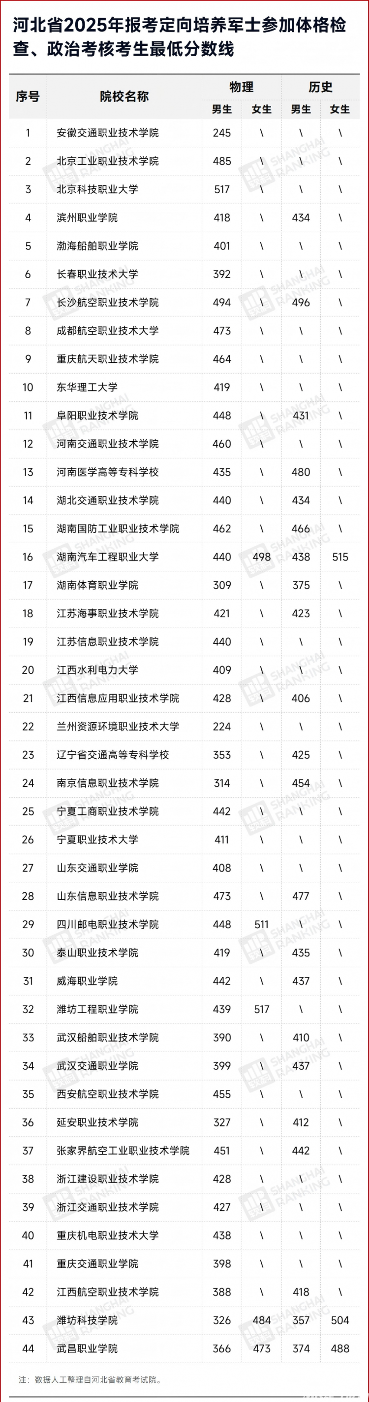 2025年,全国共有22所解放军和部队院校正在河北招生,要求考生高考绩绩达到特殊类型登科节制分数线所高职院校正在招收定向培育军士生。考生高考文化课成就须达到报考院校加入体格查抄。