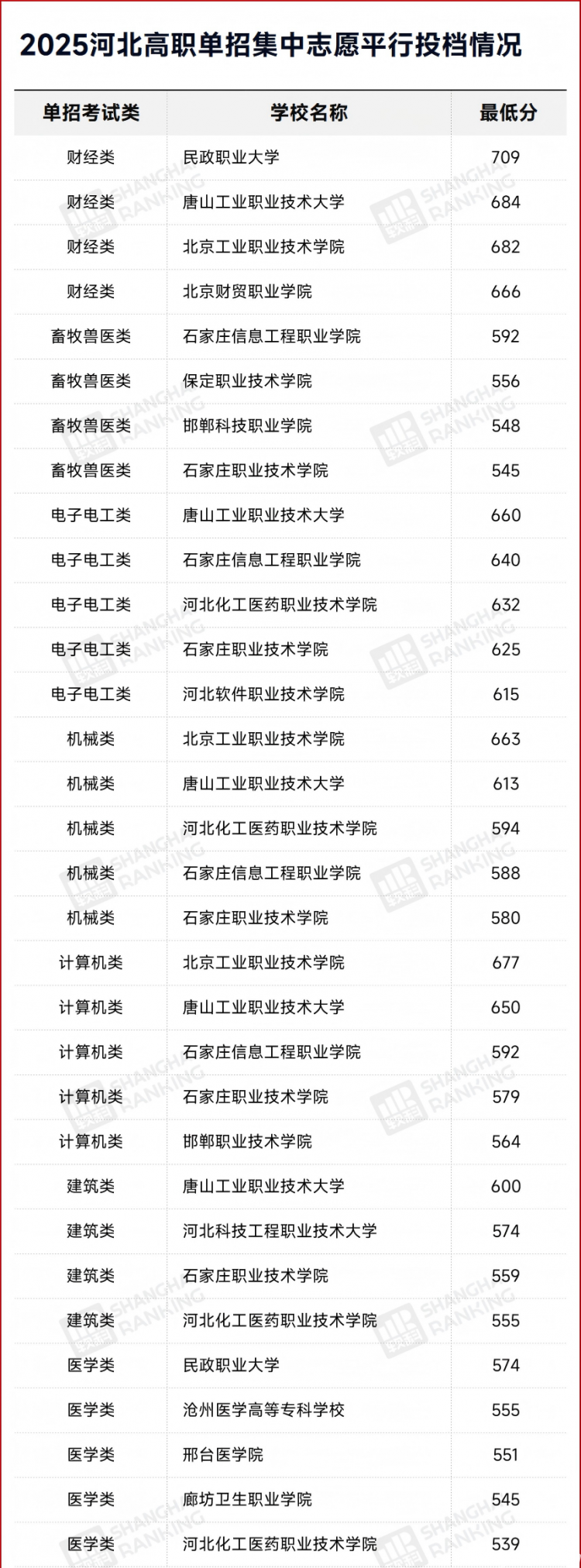 河北的高职单招按专业划分为分歧的测验类——面向通俗高中结业生(含划一学历)的测验一类至测验十类,以及面向中职结业生的财经类、建建类、机械类、农林类等十个专业类。